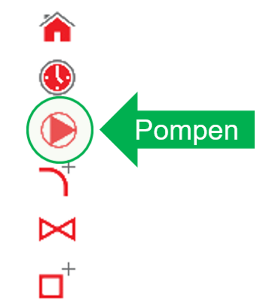 Als een pomp wordt aangemaakt en er wordt gekozen voor “Ja” in het vakje achter brandpomp, dan wordt er gerekend met drukverhoging in de leiding. Deze wordt alleen meegenomen in de berekening voor noodvoorzieningen.