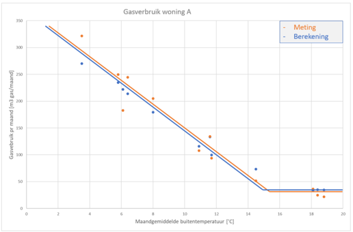 Stap 6: het berekende energieverbruik per buitentemperatuur