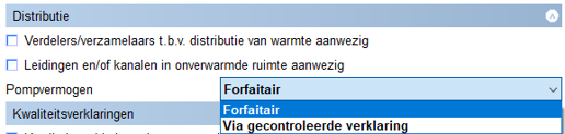 Volgens het Nader Voorschrift mag in sommige gevallen forfaitair gerekend worden, bijvoorbeeld bij het pompvermogen van de distributie. Forfaitair betekent dat er met een aangenomen (conservatieve) waarde wordt gerekend.