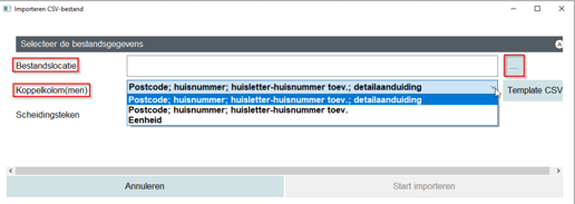 Na het invullen van de WWS punten kan er begonnen worden met het afronden van het importbestand. Op basis van de gekozen koppelkolom(men) (1. postcode, huisnummer, huisletter-huisnummer toev. en detailaanduiding of 2. postcode, huisnummer, huisletter-huisnummer toev. of 3. eenheid) kunnen alle overige niet gewijzigde kolommen in het CSV-bestand verwijderd worden. Als bijvoorbeeld alle eenheidsnummers ingevuld staan in het bestand, dan is het eenheidsnummer het handigst om dit als koppelkolom te gebruiken.